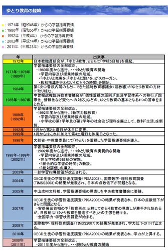 ● いわゆる「ゆとり教育」が一時期、問題になっていました。もしかしたら、昨夏の総選挙以降、政局のみならず、足もとのあちこちが棚落ちを始めているようなあれやこれやで日々のできごとからあまりに錯綜しているニッポンのこと、多くの人の脳内ではもうす…