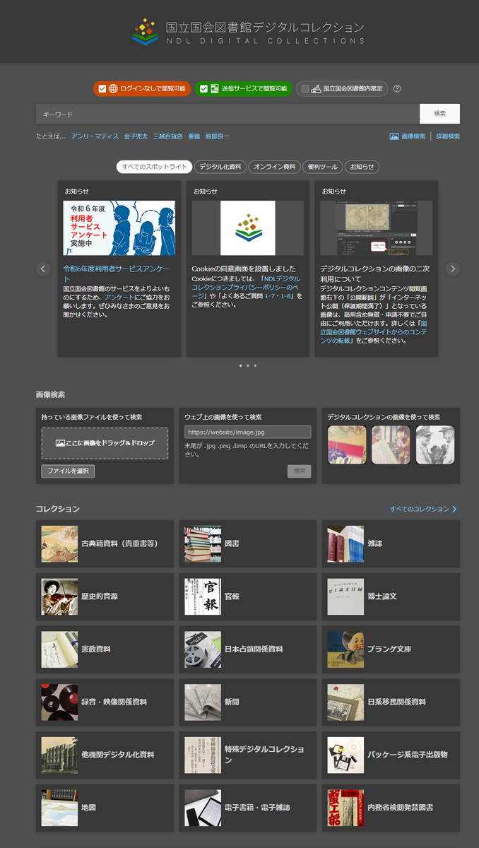 おまえの個人的事情だ、老害化ゆえの偏屈だ、と言われれば、一言もない。事実、知り合いの同世代でも、このデジタルコレクションを縦横に活用、新たな角度からいい視点のお題を発見する人もいたりする。話を聞いてみると、どうもそういう人は自分のように「眺める」と「読む」の間の偏屈な違和感など、あまり感じないですんでいるか、あるいは、初手からすんなり乗り越えられる人のようではあります。だから、デジタル化された書籍の、ブツとしての「本」がずらりと書棚に並ぶような光景とはまた違う、自分などからすればまさにデジタル空間的としか言いようのない、およそ三次元的な現実依拠のわれわれが日常あたりまえに行っている空間認識自体が効かないようなとりとめない仮想的横並びを、ただ「情報」として、まさに「コンテンツ」としてだけ「処理」することができる、そういう能力の持ち主。これはもう、いまさらどうしようもない違いであり、自分ごととして考えてみても、この何ものかよくわからない違和感というのをこの先、こういう環境に自ら慣れることで克服できそうな気は、どうにもしないのであります。