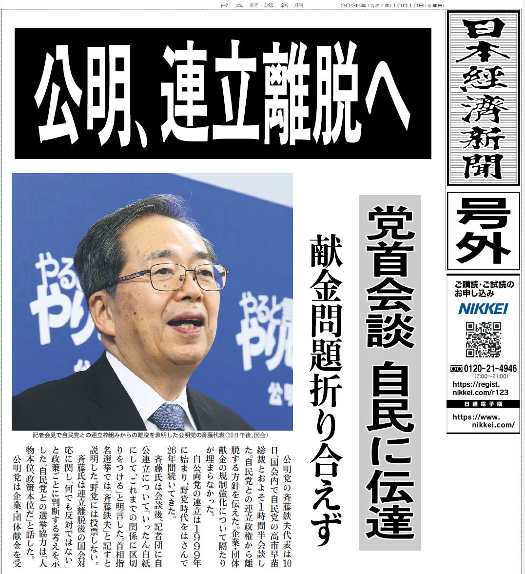今回のこの公明党の政権離脱は、あの安倍元総理の「暗殺」と共に、その「失われた30年」に誰の目にもわかりやすい形でのピリオドを結果的にせよ打ったことに、今後なってゆくのかも知れません。